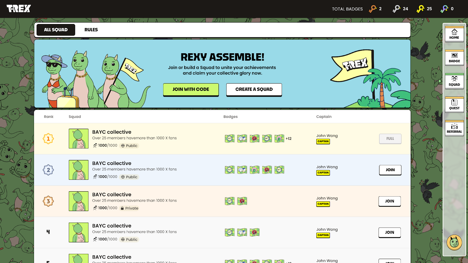 2. Create a Squad to become a Captain, or Join one via the leaderboard or an invite code.